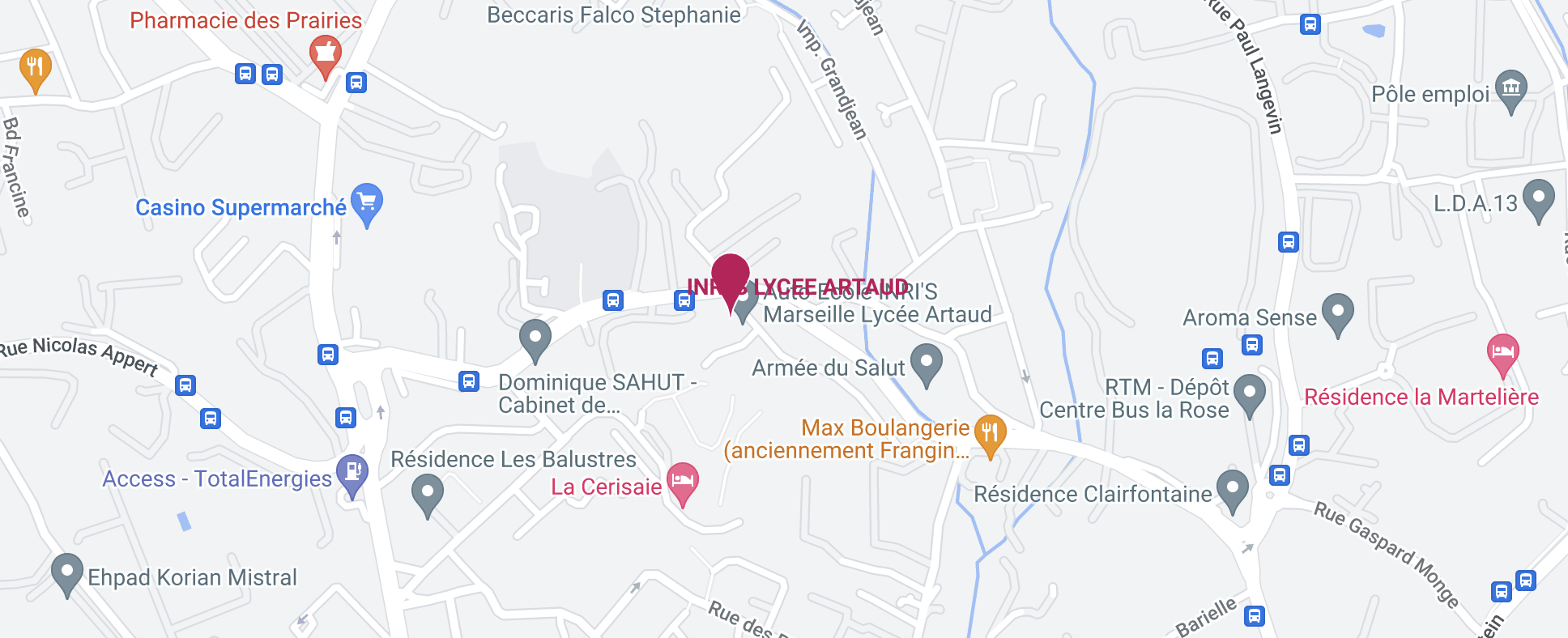 Notre auto-école INRI’S Marseille – Lycée Artaud située à Marseille dans le 13ème arrondissement en face du Lycée Antonin Artaud et de l’Artothèque Antonin Artaud, est ravie de vous accueillir du lundi au samedi pour votre formation au permis de conduire. Spécialisée dans la formation accélérée, INRI’S Marseille – Lycée Artaud vous propose une large gamme de formations conduite et code de la route. Formez-vous efficacement avec INRI’S, grâce à nos nombreux stages accélérés et formations traditionnelles. Depuis plus de 22 ans, notre équipe de formateurs diplômés d’état est là pour vous soutenir et vous accompagner tout au long de votre formation, grâce à leur pédagogie et leur professionnalisme. Si vous êtes en situation de handicap, notre agence propose également un permis mobilité réduite en formation traditionnelle, avec des véhicules spécialement adaptés. Pour vous faciliter l’accès au permis de conduire, l’agence INRI’S Marseille – Lycée Artaud propose le permis à 1 Euro par jour . N’hésitez pas à nous contacter via le formulaire pour plus d’informations.